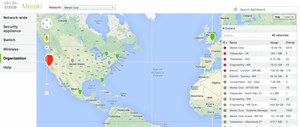 https://my.meraki.com/ allowing you to set up static IPs if needed.Once set up you can visualise your deployed Apps on Google Maps, allowing you to easily manage multiple locations around the world. It will allow you to upload floor plans for deployments using multiple access points in one building. You can then tag and rename devices making management easier.