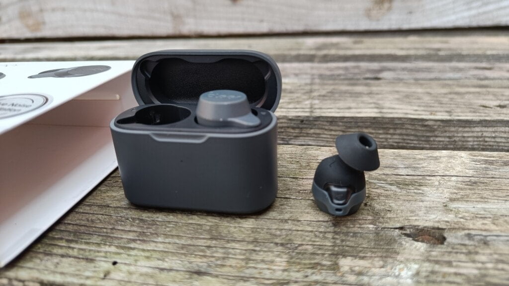 The overall look of these earphones is relatively generic, with a plain dark grey case and earbuds. There is a small nubbin of a stem that appears to contain the mic, this then leaves the bulk of the earbud sat within or extruding from your concha.