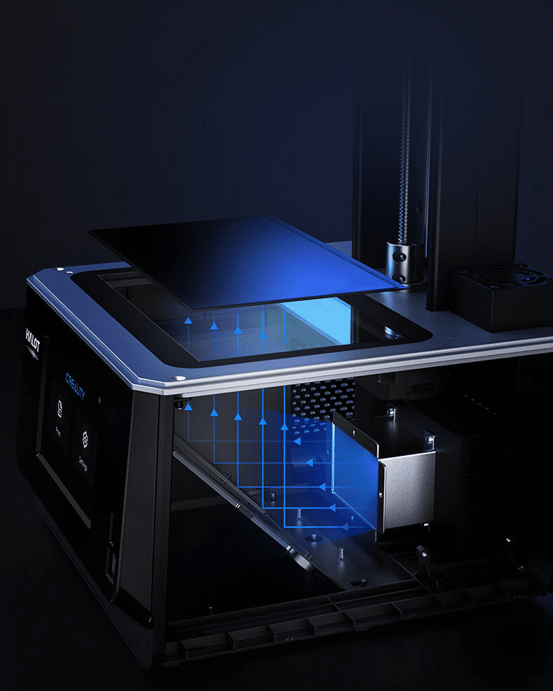 Creality has developed its own integrated light source to increase light uniformity across the whole display. Depending on the light source, a display can experience a vignette effect, having darker edges, potentially causing a print to fail. Reflecting and refracting an array of Ultraviolet lights, the Halot One Plus claims a light evenness of 90% or more.