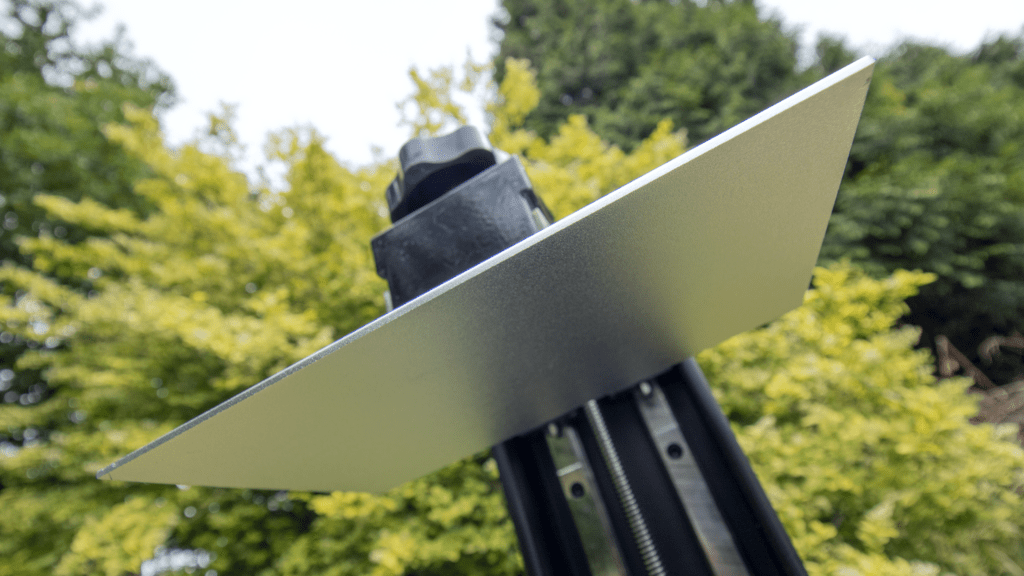 The resin tray is a similar well-designed, low-tech part of the One Plus. Though it seems arbitrary to mention it, it’s a fundamental part of the printer. Complete with a spare FEP sheet, the metal tray is the centrepiece, really. The tray is secured by two thumb screws, allowing easy removal whilst wearing gloves. It also has clear measurement lines, and two spouted corners for easy resin decanting. Again, these seem like tiny things, but they improve the quality of life when using this printer.