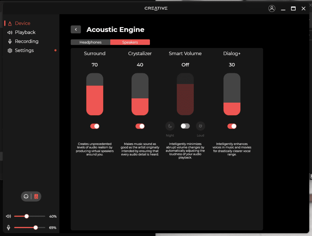 For gaming, both on the PC and console, the scout mode is a valuable feature within the Creative App, allowing you to improve the clarity of certain noises such as footsteps and steps, which, in theory, should help enhance your gaming performance.