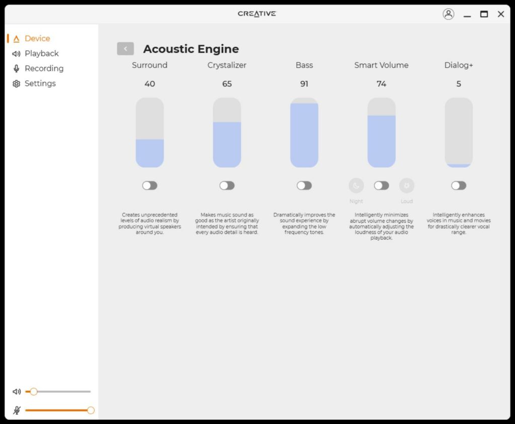 The Acoustic Engine then offers manual EQ, beyond the buttons on the device itself.