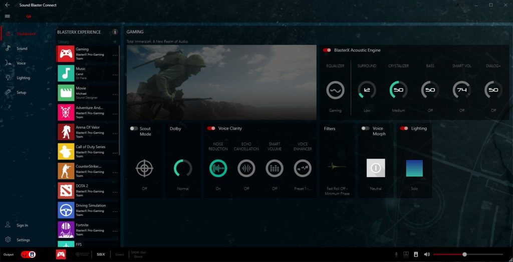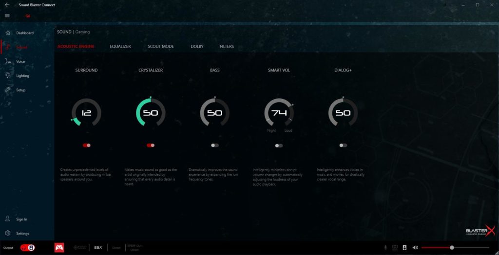 The Sound Blaster Connect software offers a wealth of customisations with a lot of gaming orientated options. In particular, there is scout mode which is designed to help highlight footsteps, speech and weaponry handling in games.