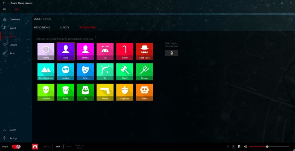 If you have a wired gaming headset, then you can also adjust multiple aspects of the microphone. This includes the volume, improving clarity, then there is a voice morph section which can make your voice female, male and various other presets.