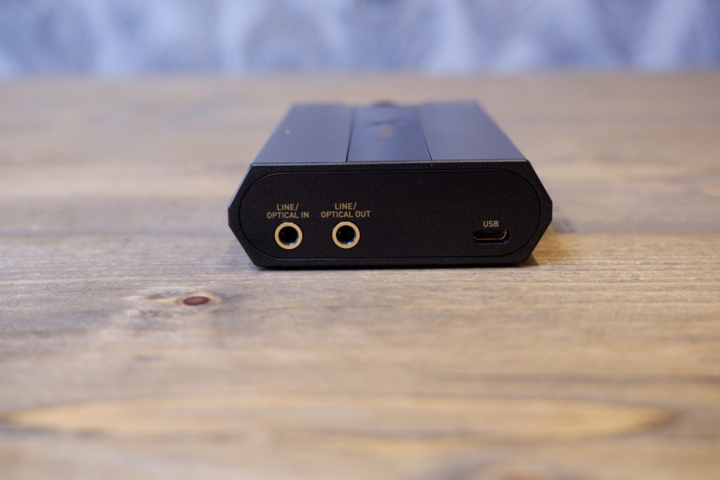 The Fiio is very much a desktop device, while not heavy it is quite chunky. This has 3 input option, coax/optical in, line in and USB in. This then requires power via a dedicated power in. Switching between inputs is done manually via a small switch on the front.