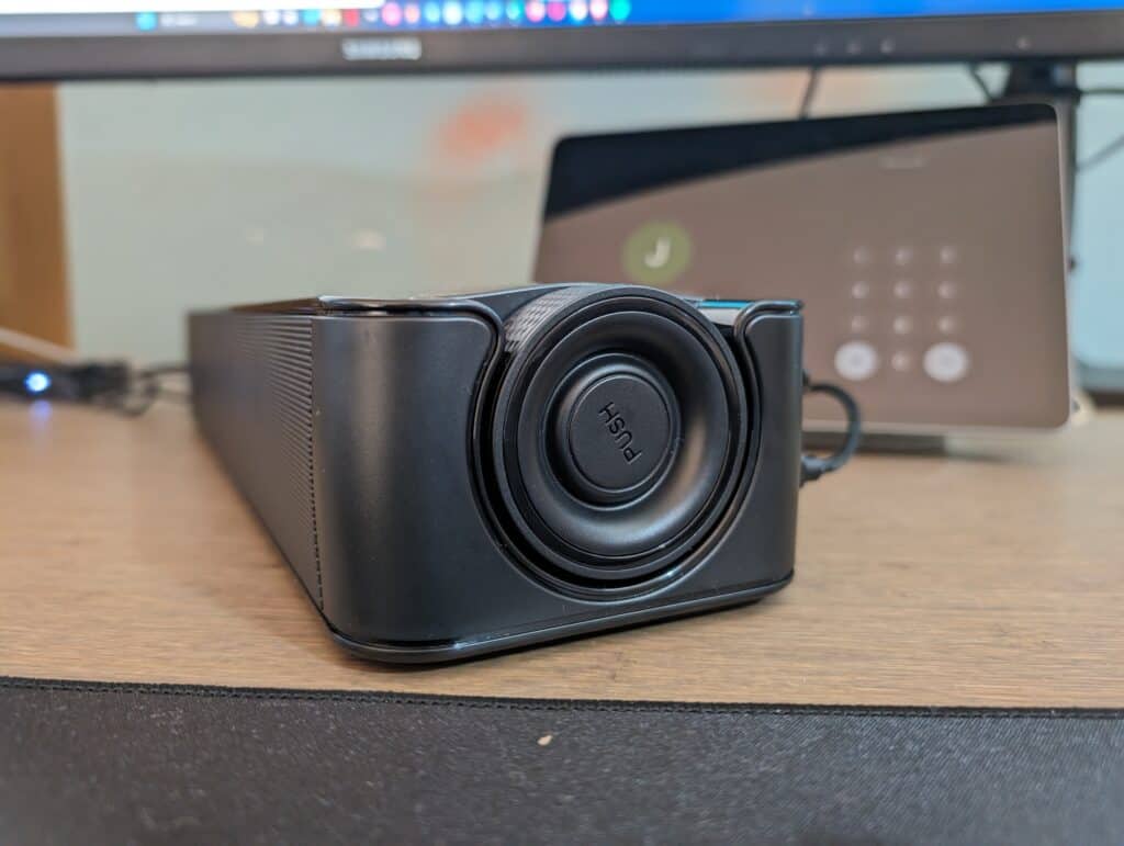 The large multi-functional knob on the side of the soundbar as it lets you adjust the volume, switch between modes and power the device on and off. I like the ability to turn down the volume with a physical knob within arm’s reach, it is much more user-friendly than messing around with media keys on my keyboard or the Windows settings.