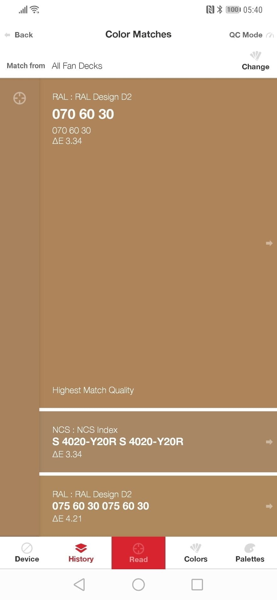 The blurb from the website states:The app shows you the closest colour from the RAL or NCS colour assortment including colour codes. With these you can then mix your colour in your favourite hardware store. Whether you’re a painter, interior designer, facility manager, carpenter, photographer, craftsman, tailor, artist, DIY or creative; whenever you need to specify a hue, ColorReader comes into play. Determine colours, fast, digitally and without annoying scrolling in colour fans: Do you have your trend colour found in nature, a furniture catalogue, wood, textiles or fashion items such as clothes and shoes, just set the ColorReader on the target colour. You will immediately see a colour picker closest to your colour. You have literally a digital colour fan at hand and thus save money, because you can do without the purchase of commercially available colour fans. Another advantage: The ColorReader is not subject to wear, as colour fans, colour cards and colour samples do. But even if you have to hit a certain colour, as is often the case when restoring furniture, painting windows and rooms, the ColorReader performs well. Its Quality Check feature allows you to accurately check if a hue has been hit.
