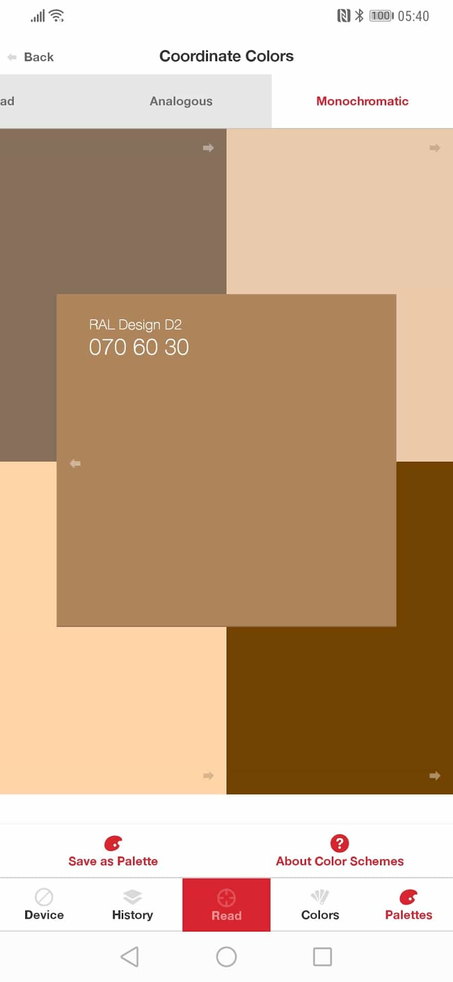 Once you hit the read button the lens lets out a bright flash similar to a camera flash, the data then gets sent back to your phone. I found this happened well within a second, it felt almost instantaneous.The reader will provide the highest accuracy sample along with other close matched tones. You get an image of the colour and then the RAL colour reference allowing you to easily take it to a paint store for mixing or pass onto a designer for use in their material.When you select on the colour of your choice, you are greeted with more options. As someone that is quite poor at design, and terrible at colour matching when it comes to decorating, I particularly like the coordinate colours function. It allows you to find coordinated colours using either analogous, complementary, monochromatic, or triad colour schemes. If you see a palette, you like you can then save it. I am sure more experience designers may be able to do this naturally, but I think this could make the ColorReader perfect for any enthusiast DIYer looking to decorate their home.You can also then vie the colour on a fan deck allowing you to select similar colours around it.I have tested the device against some colour sample swatches, and it appears to be quite accurate in my limited tests.