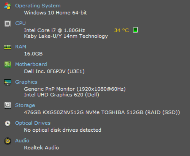 Using CrytakDiskMark I tested the NVMe drive, and as expected it performs amazingly. It isn’t the same level of performance you would find in a Samsung drive, but it is good enough, and everything loads up with minimal wait.Dell claims a 19 hours 46 minutes battery life when doing office work, I never pushed the battery that far, but it easily handled a full day in the office doing general office work with Spotify streaming.