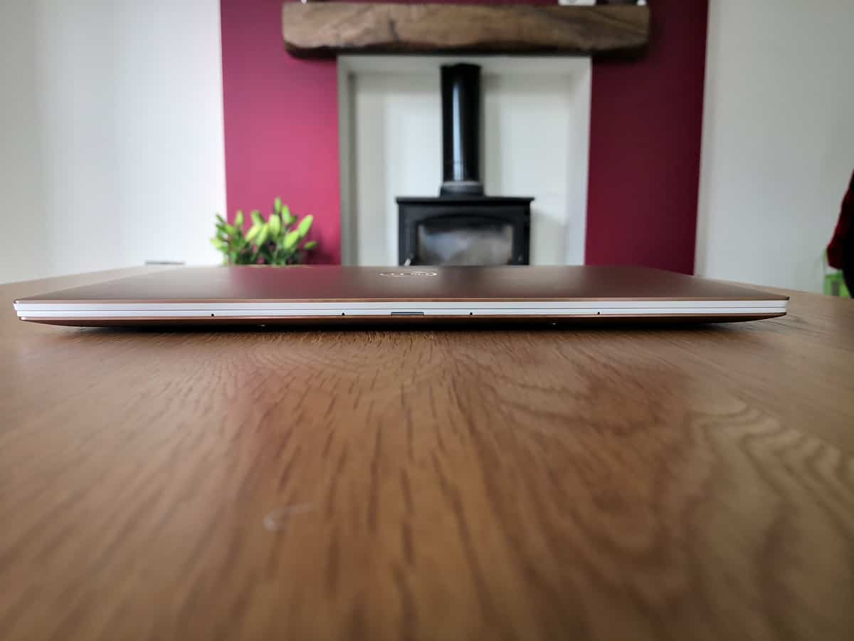 The model I was sent is in Rose Gold with white on the inside, while it isn’t the colour I would choose if I were buying it myself it does look lovely, and it makes a nice change from the typical black or silver options available.Regardless of colour, from the moment you pick this laptop up, it exudes class with an exceptional build and feel. The overall footprint of the laptop is tiny and perfect for travelling with; the outer shell is a smooth aluminium finish while the inner palm rest uses a glass fibre material which has a fantastic feel to it.As with all of the XPS line, this features an infinity edge display and as usual, it is exceptional, the screen is glossy, but I found the reflections significantly less bad than that of other recent reviews. The Dell specification does state this is anti-reflective, and this appears to be quite accurate. This model uses an FHD display rather than 4K found on more expensive models. I am fine with this, it saves a few hundred off the price, and I found the overall quality of the display to be superb. The screen is much more vibrant than the Envy 13 that I reviewed recently. The quality of the display and lack of reflections appear to be helped by a very thin overlaying glass with a zero-gap design.The official blurb from Dell about the screen states: