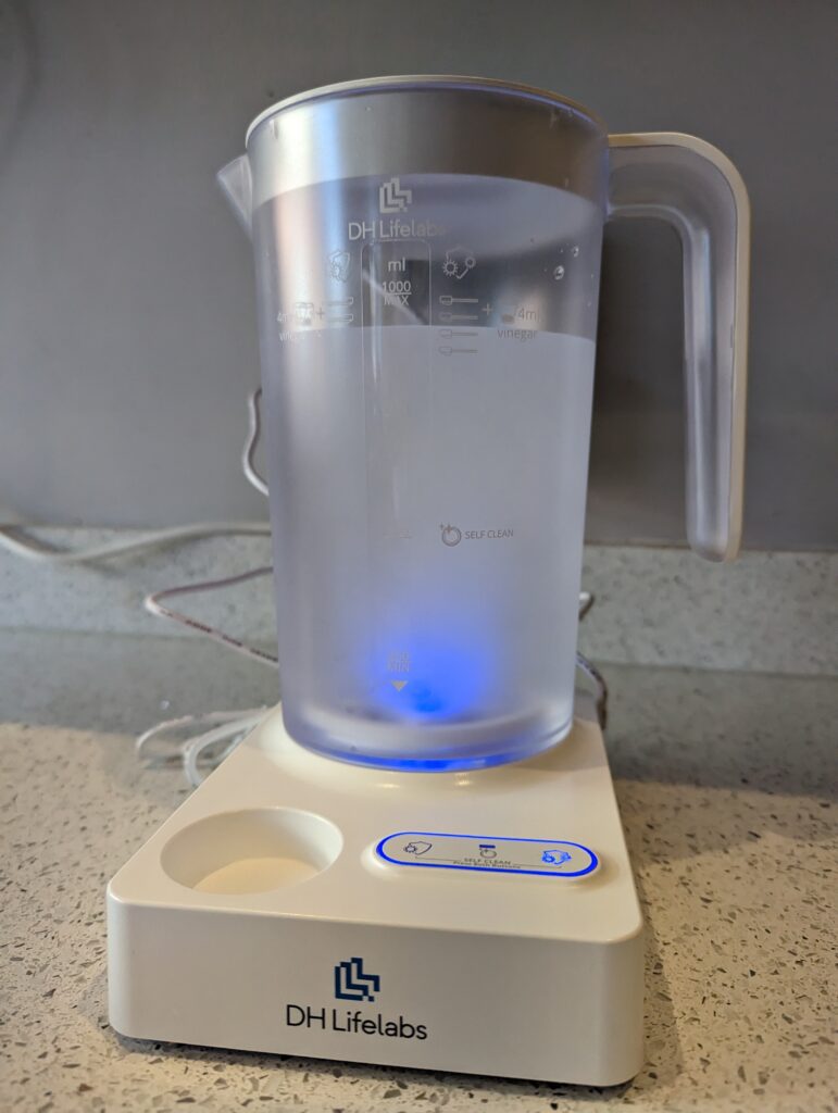 Apart from that, it is a simple device to use. You just fill the jug up to the max line, then use the measuring cap to measure out 4ml of vinegar and the included spoon for however strong you need the solution.