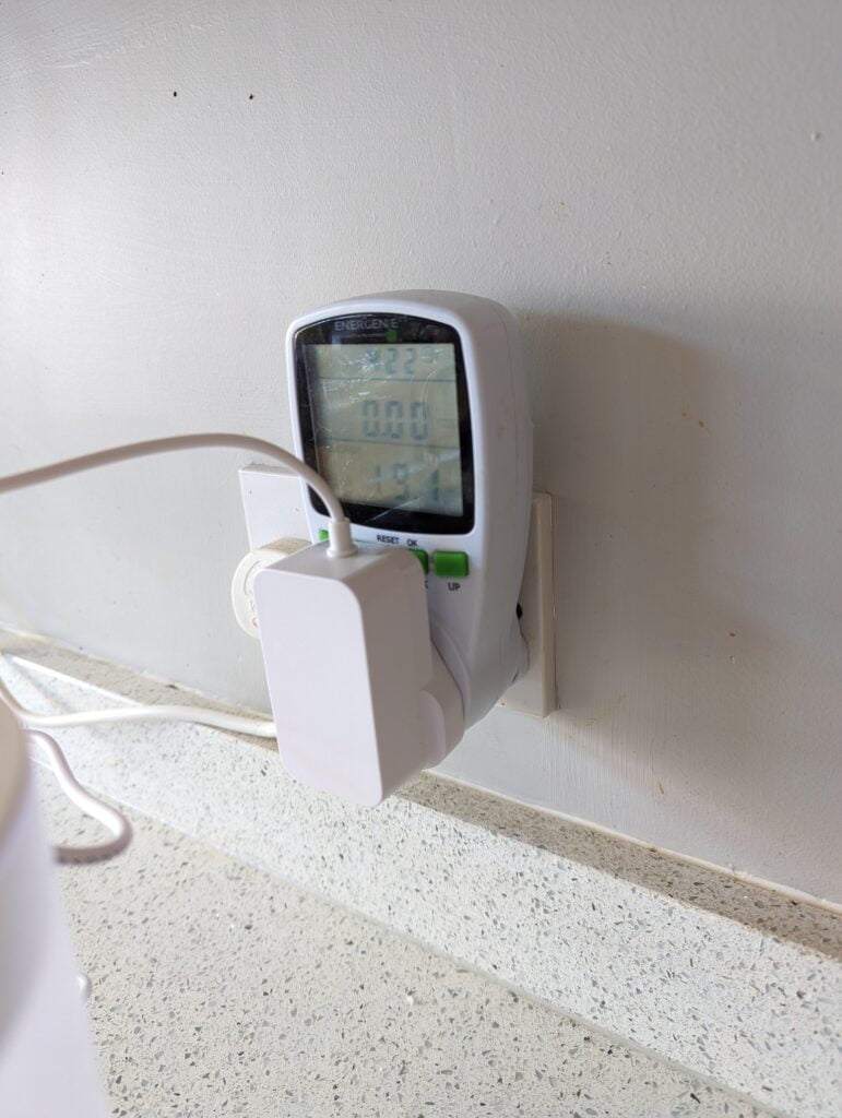 The machine uses 18 watts while it is making the solution (my power meter measured up to 19w). Based on the current energy price guarantee, that works out at £0.001224 per 12 minutes for the cost of electricity, which is not really worth worrying about.