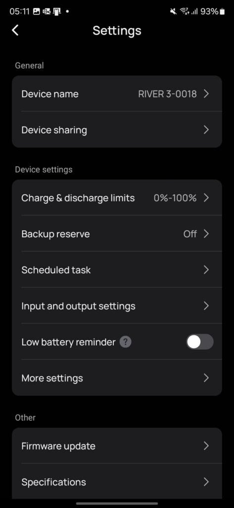 The app provides various control options, including the ability to customise the low battery warning, set backup percentage levels, and even schedule specific charging tasks. These features add a lot of convenience and usability, especially for users who plan to use the device in a remote setting and want to optimise power usage.