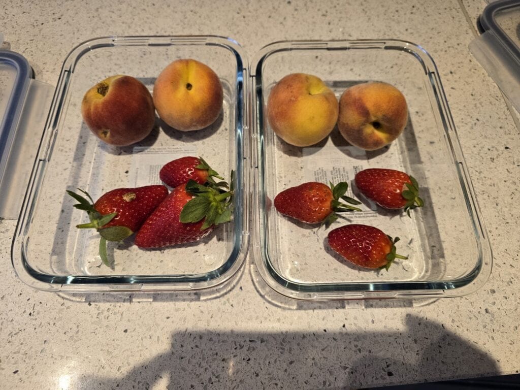 I set up a basic test to see how much difference Ecoloc makes with keeping food fresh. I decided to test it with peaches and strawberries, as I find that these are prone to going mouldy quickly.