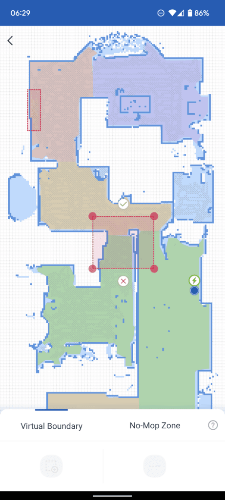 When you load up the map, you can define virtual boundaries and a no-mop zone. These do exactly what you expect.
