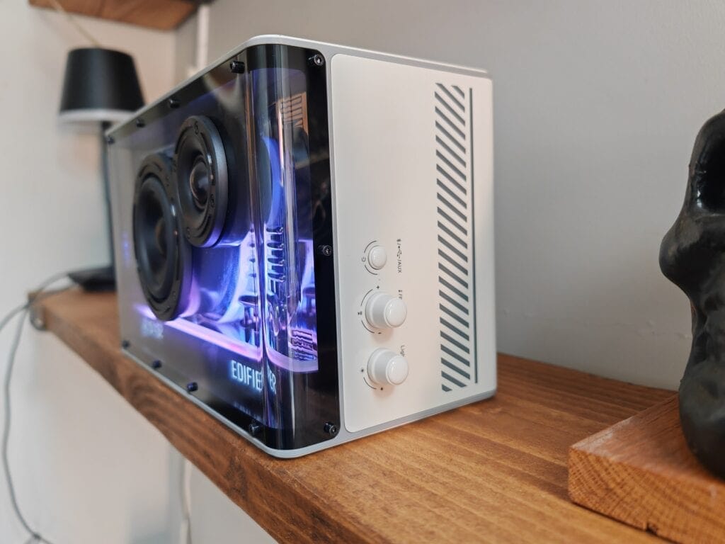 This is clearly designed to appeal to gamers with its modern looks and RGB lighting. It is not an aesthetic I am personally fond of, but I think it works quite well with this speaker.