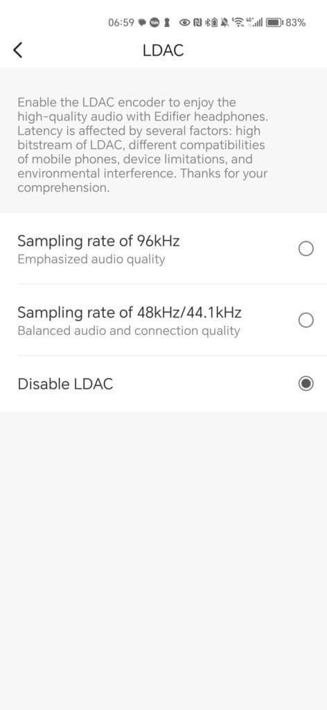 The LDAC audio codec needs to be enabled within the settings of the Edifier Connect app. You have a choice of