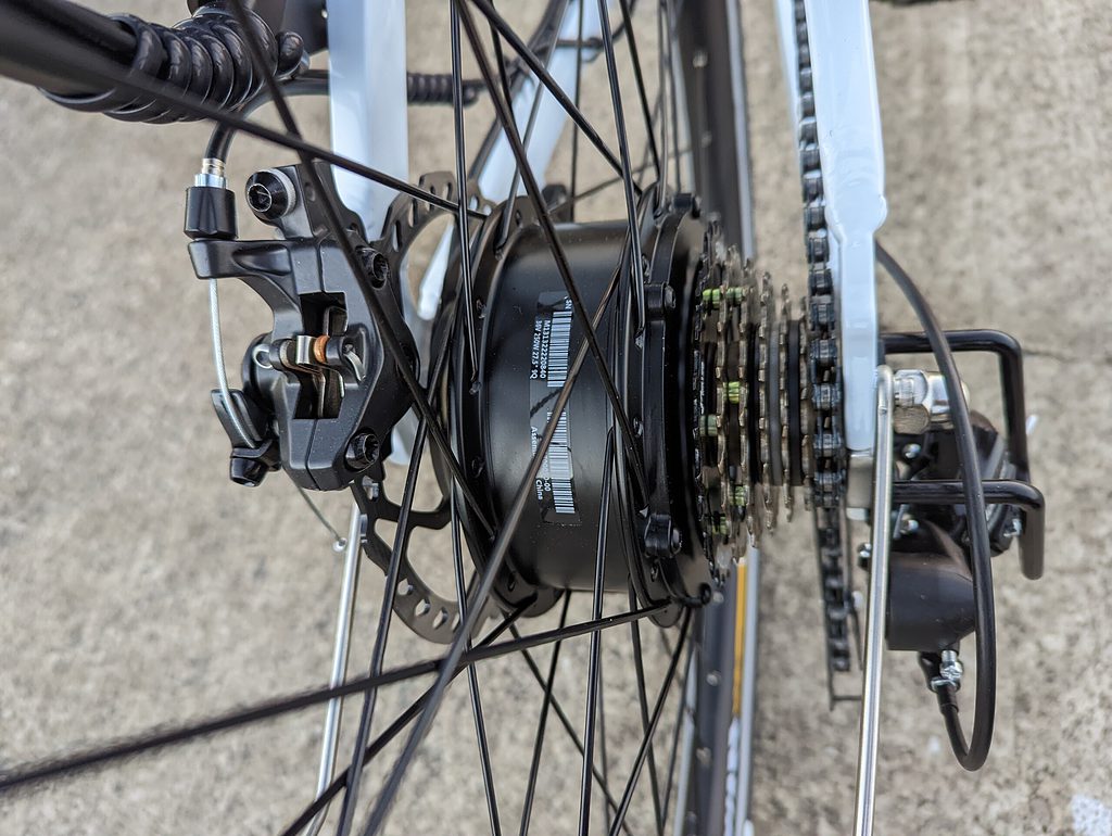 Most of my cycling is done on relatively flat roads, but I took it up my usual steep hill test. Using the throttle, it gets about halfway up the moderate incline part of the hill before I need to provide additional assistance. It struggles a little up the steepest part, but by lowering the gears, I was able to cycle up this part with minimal effort.