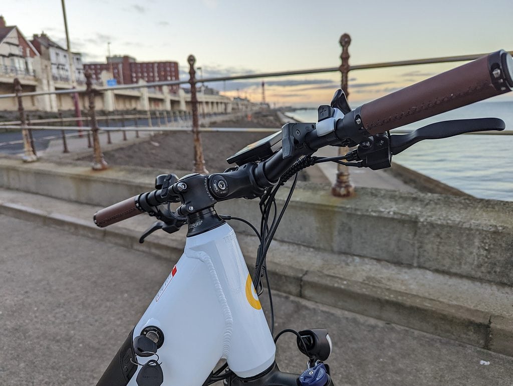 The electronic assist is speed triggered, but if you have the throttle attached, you can make a quick start. This bike strictly stays within the UK limits of 25 km/h. Considering most of the bikes I have used recently break this limit, this feels a bit sluggish to ride at full assist. Personally, I think 20mph/ or 32 km/h is a more natural speed to travel at. I believe it is possible to unlock the bike speed to 32 km/h, but I have not tested this.