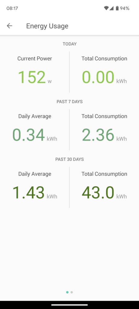 In comparison, the TP-Link Kasa plugs only give you basic information about the current usage, past 7 days and past 30 days. The Tapo app is marginally better as this has graphs for 24 hours, 7 days, 30 days and 12 months, but it is not as detailed as the Emporia plugs.