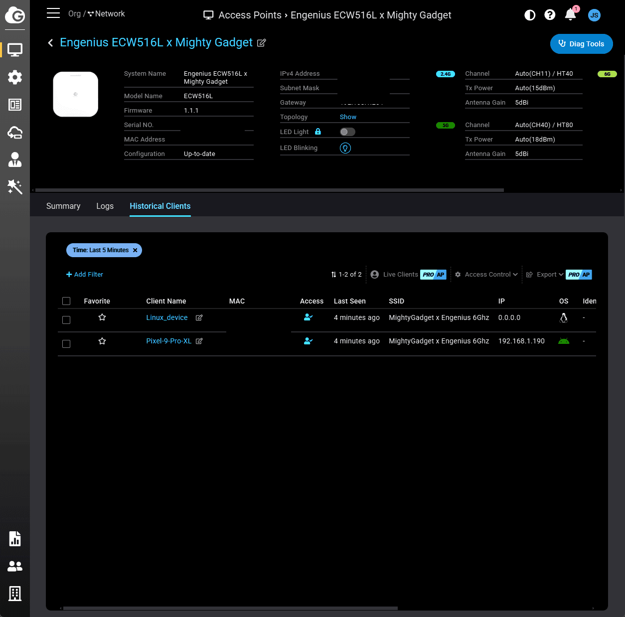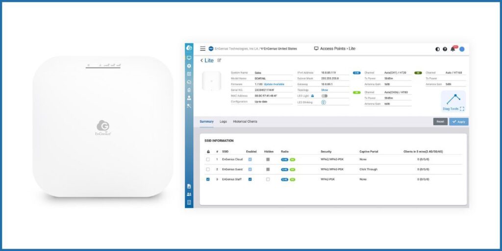 As this access point uses the normal EnGenius Cloud interface, the overall experience is identical to the other EnGenius access points.