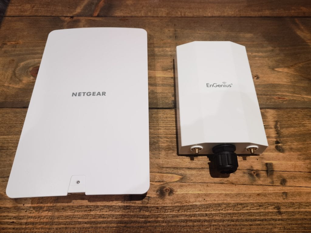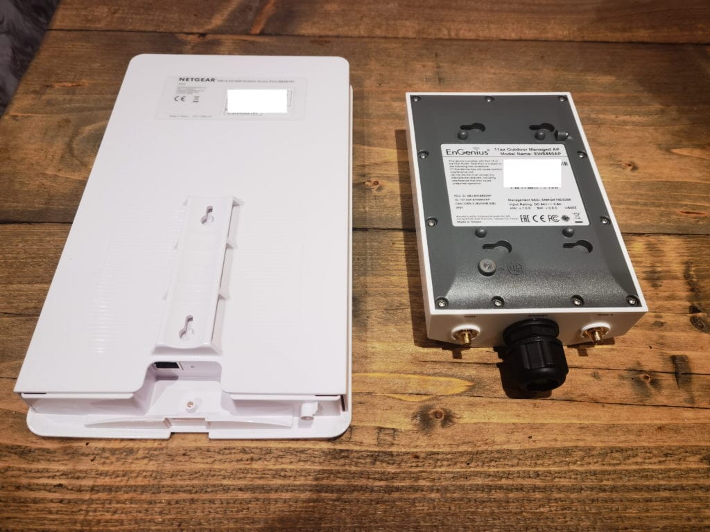 The EnGenius EWS850AP is an excellent outdoor access point. It is priced reasonably well (in the US), and the overall build quality justifies the slightly higher price vs the Netgear option. In particular, the IP67 rating would give me the confidence to mount this anywhere on my property in the typically windy and rainy environment of a northern coastal town.