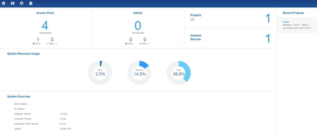 ezMaster is not my favourite interface, and the SkyKey is quite slow to use. The system does not seem that intuitive to use compared to Engenius Cloud or other cloud managed services.