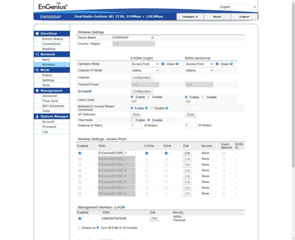 Unlike my more recent Engenius reviews this AP uses the slightly older ezMaster, Skykey controller, and EWS Management switch methods of control compared to the Engenius Cloud.