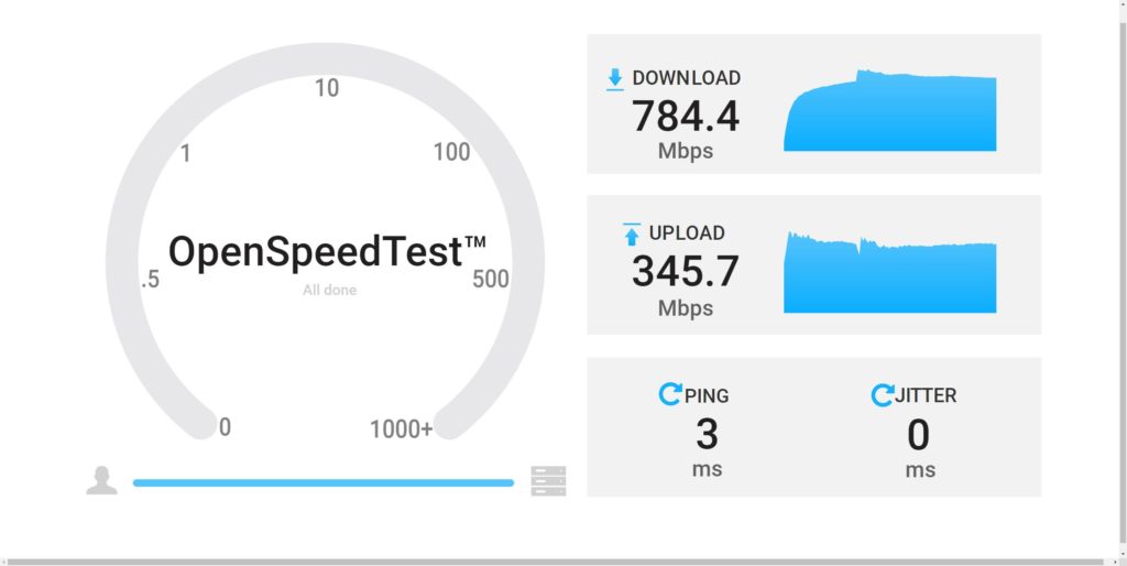 - Outdoors stood below the AP approx 2m away – 745Mbit/s