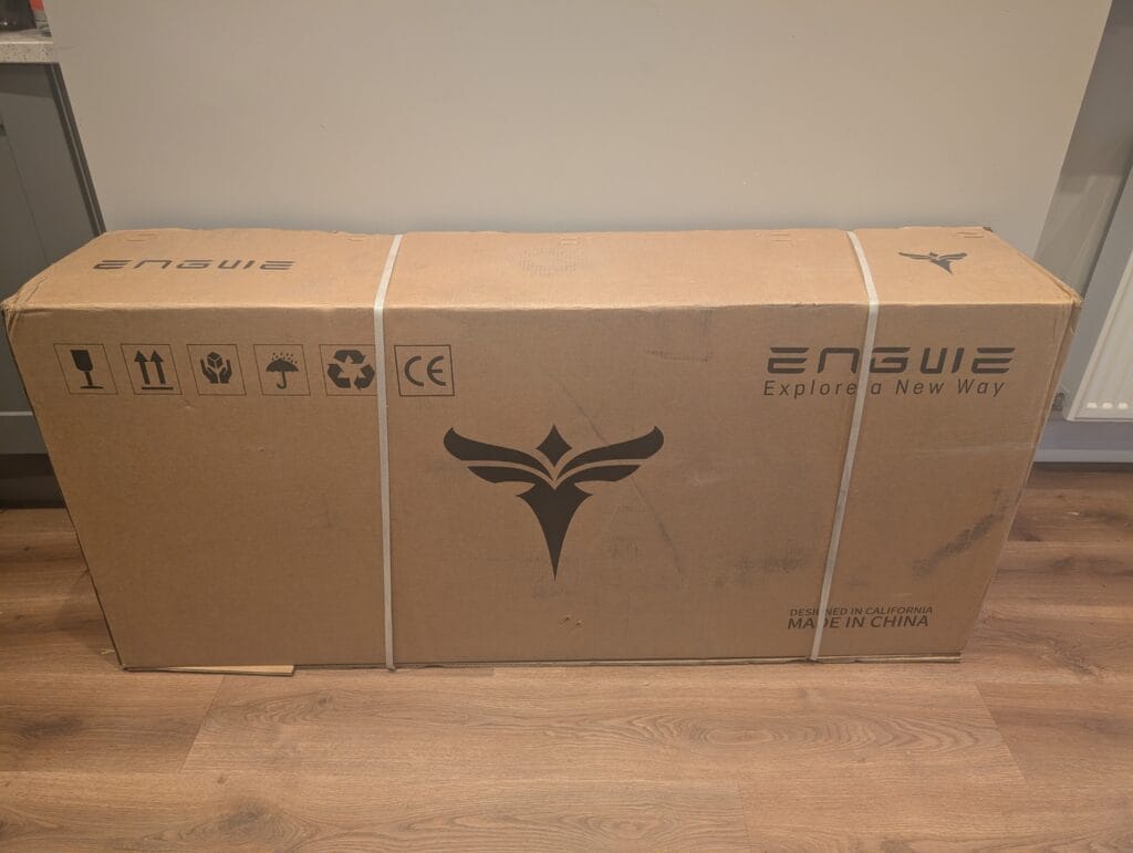 The Engwe Engine Pro 2.0 arrives mostly assembled, which is a relief given its substantial weight of 31.6 kg. The packaging is robust, ensuring the bike arrives undamaged. Upon unboxing, you’ll find the bike folded, with only a few components requiring attachment.