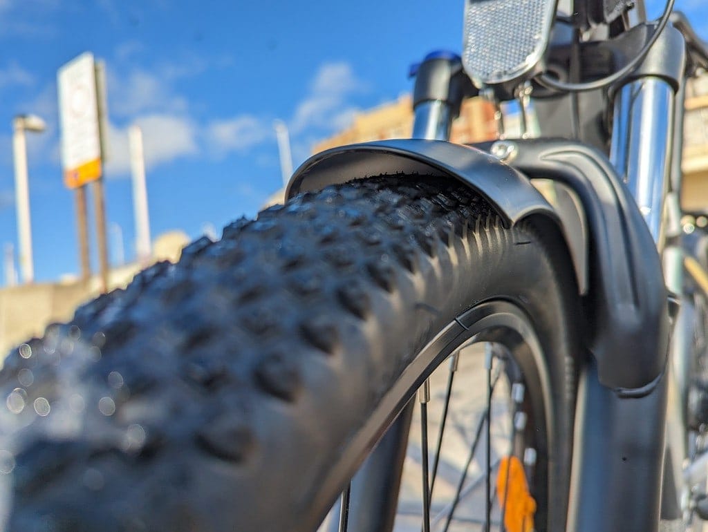The mudguard also fits quite closely with the front tyre, which is good for reducing splashback from a wet surface, but you may need to fiddle with it as it can catch on the tyre while riding.