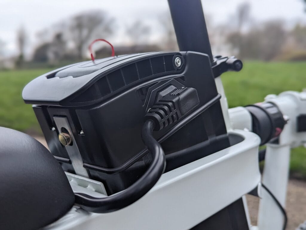That being said, it is a comfortable ride, the seat is more like a moped seat, and it is heavily cushioned. I predominantly used the throttle, so pedalling wasn’t too much of an issue, and 12mph is still considerably faster than walking somewhere. Many people (my partner) can’t even sustain 12mph on a normal pedal bike.