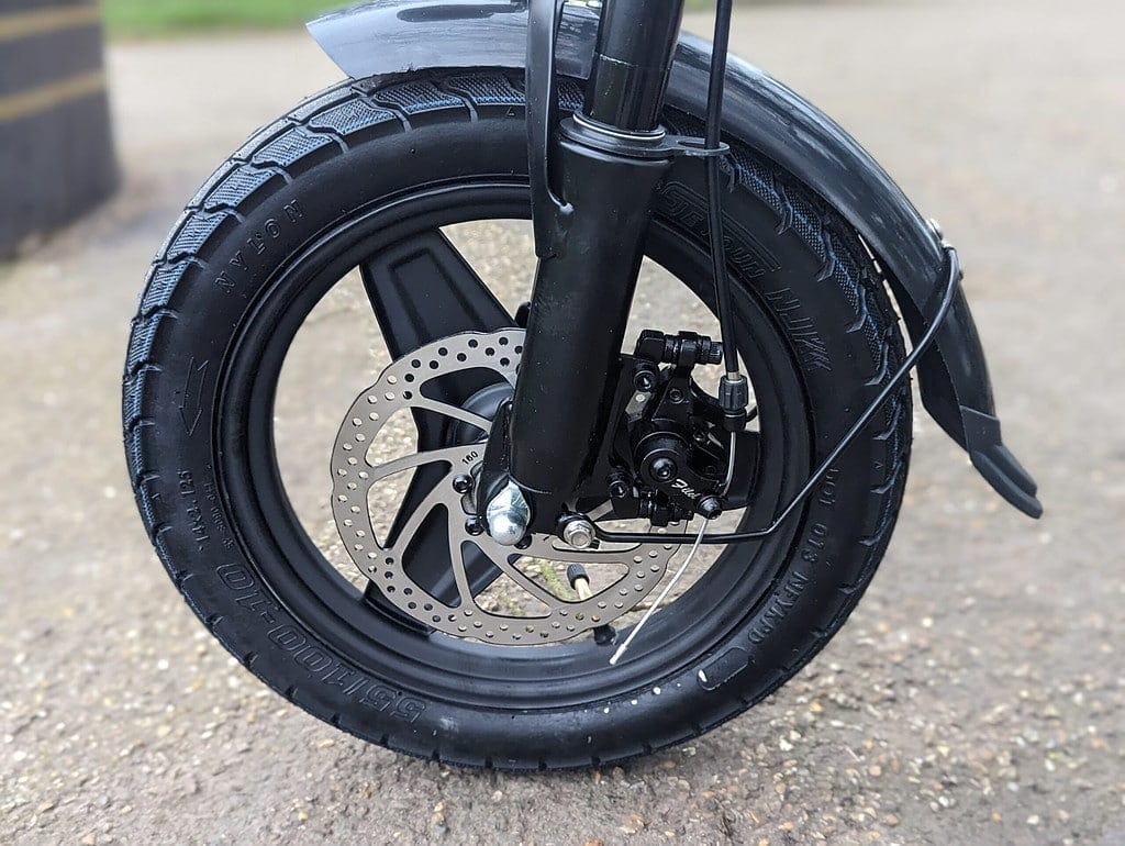 The weight of this is listed at 28.46kg, which seems very heavy, and I can’t understand how this can weigh more than the much larger Engwe P26. While it does feel heavy lifting it up, I find it much easier to deal with than most other e-bikes. I think because it is so small, it’s just much easier to move around as you are not bashing into things as you try and take it indoors or onto public transport.