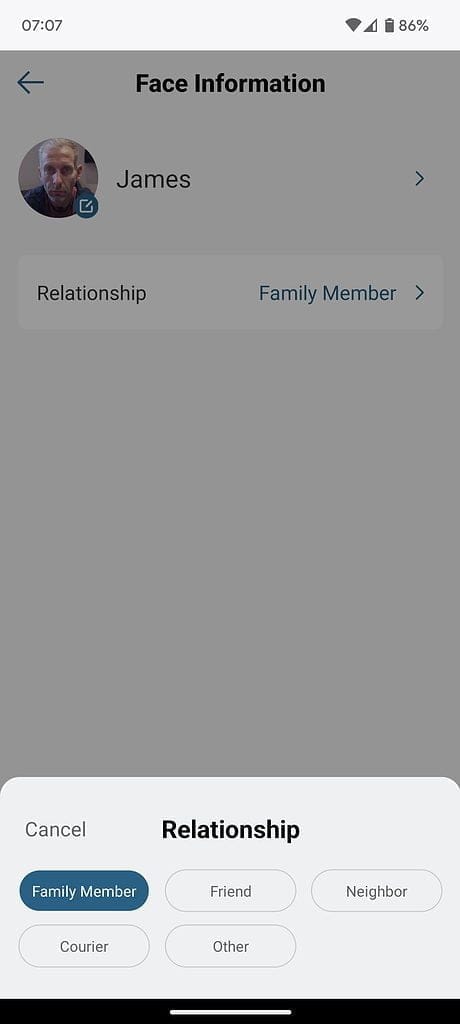 It should recognise unfamiliar faces and then give you the option to add these to the familiar face section. However, I have had mixed results with this. Facial recognition needs the camera located quite close to the object. The Eufy documentation says it needs to be 2-4 metres away for facial recognition, 2-7 meters for body shape and 2-8m for human detection.