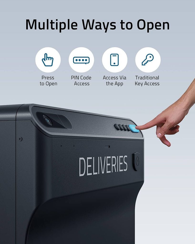 - Multiple Ways to Open: Access SmartDrop in 1 of 5 ways. You can let couriers, friends, and family press the Open button if there is nothing inside, or give them a PIN. Access it via your phone or through voice assistants, and if all else fails, you can also use a traditional key.