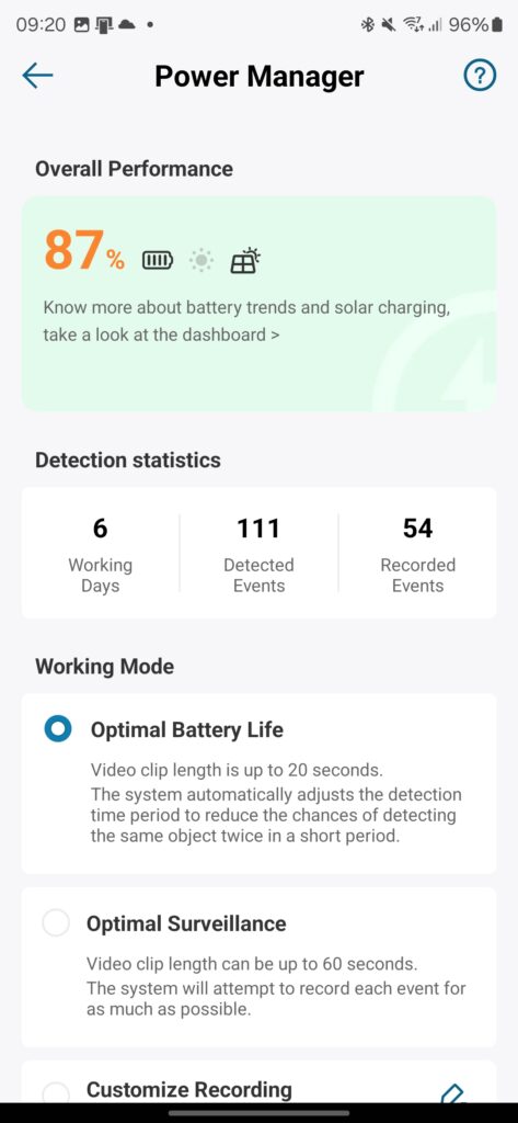 The app allows for customisation of various camera settings, including video quality, detection sensitivity, and notification preferences. You can also set up activity zones, adjust night vision settings, and manage your storage from within the app.