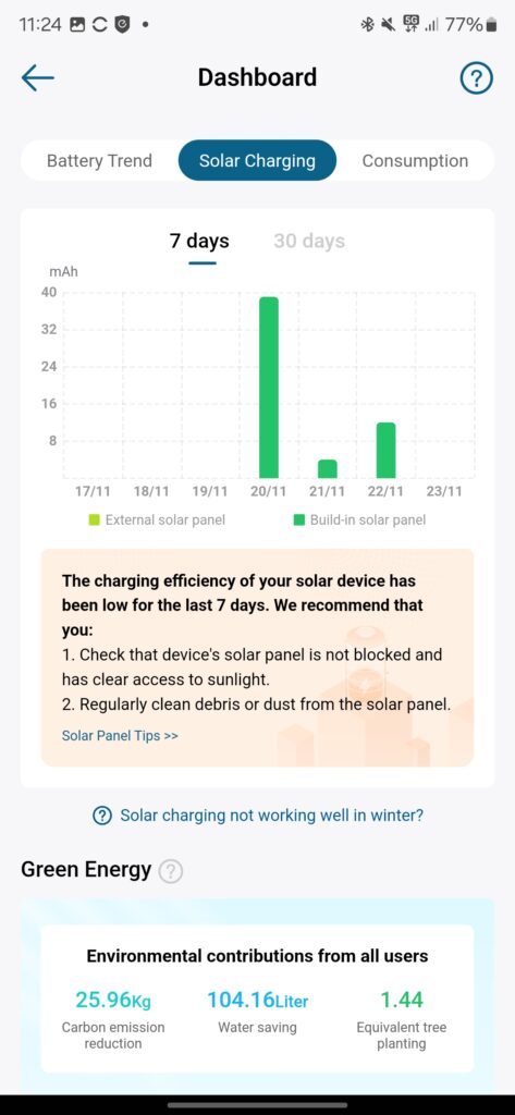 During my testing, it is November in the north of the UK. There is barely any sun, and the position in which my cameras are mounted is not the best for sunlight exposure.
