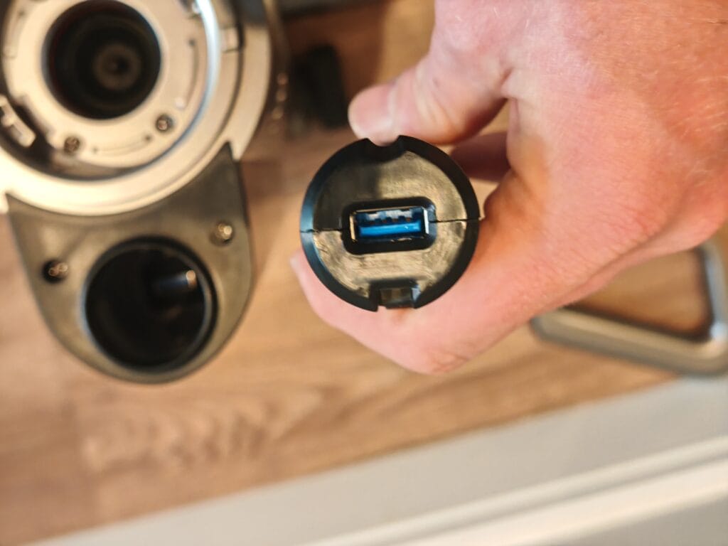 Interestingly, the controls from the handle down to the main unit are connected via USB. I though that aligning the USB may be difficult but the pole has a grove in it making sure you insert it correctly.