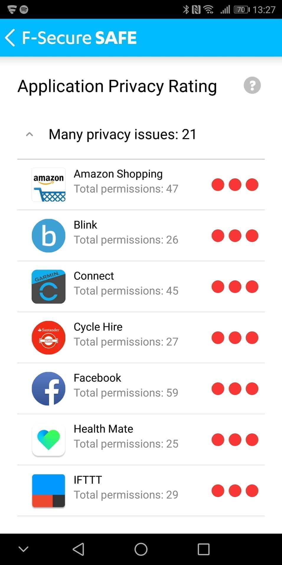 Mobile anti-virus was something I was never totally sold on, and I am still not, but with the growing concern over privacy, the F-Secure Safe app does provide insight into applications to be concerned about.