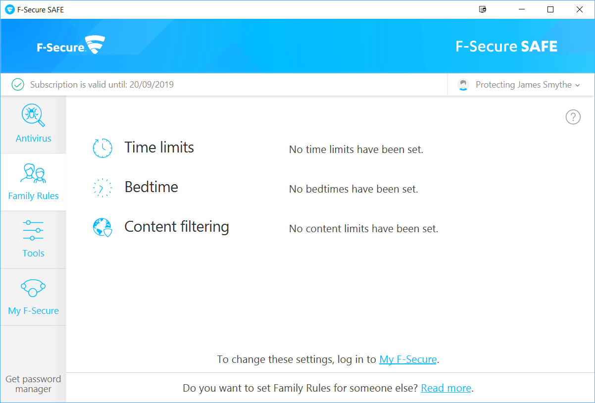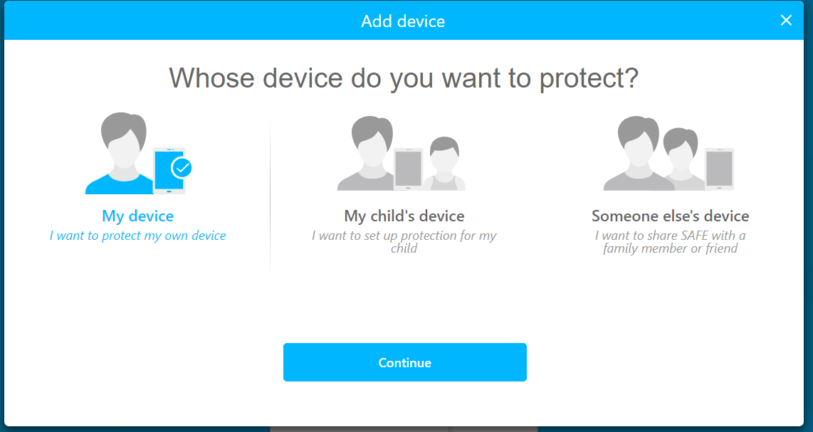 This software requires you to sign up to an F-Secure account, which some users may not like, but it is essential to some of the features offered within the software. When you sign up and apply your product key you can manage the device licences, you have the option to assign the device to yourself, a child or a friend. Then you can opt for which type of device you would like to set up, so you can choose this computer, another computer, a tablet or phone. Android and iOS are supported.