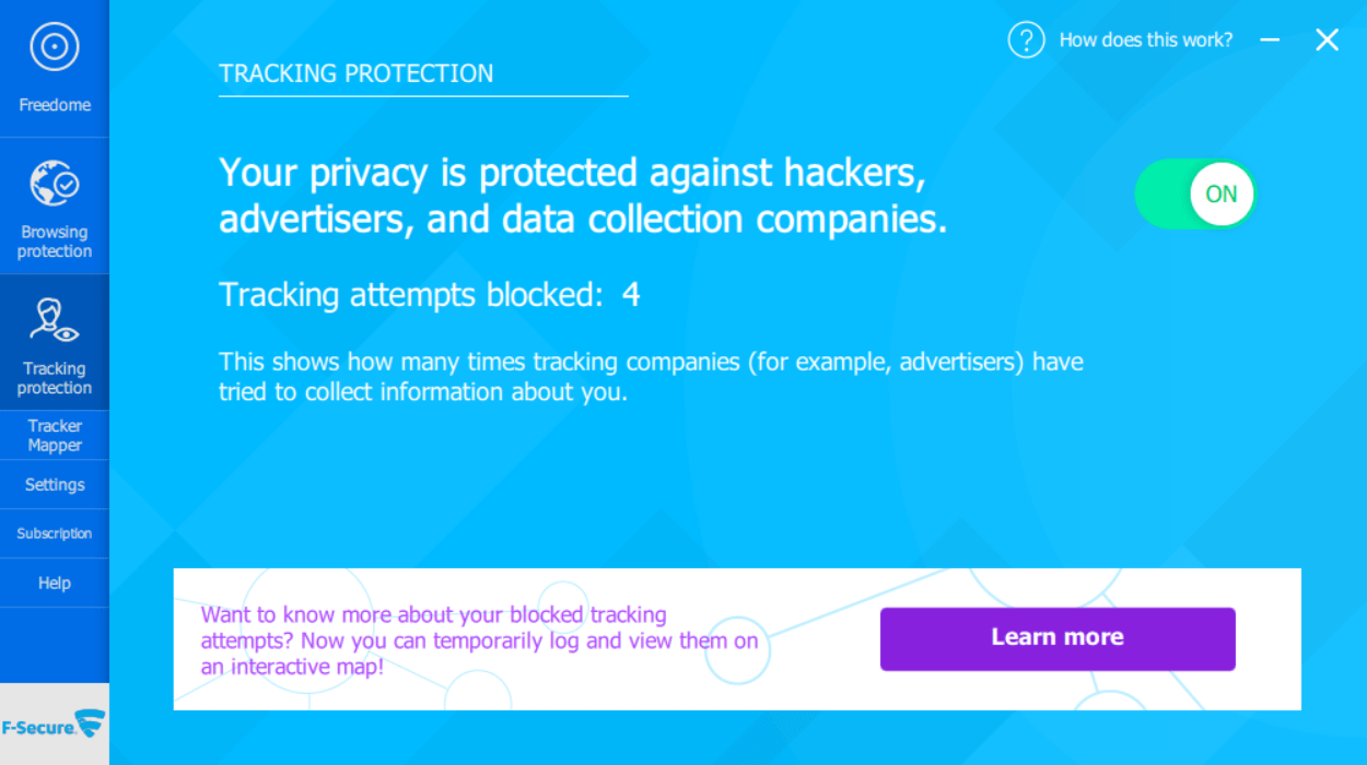 Freedome VPN remains my favourite VPN to use, it just seems to connect a lot quicker than other solutions, and when it is connected I have found the speeds to be more reliable than others. It has excellent tracking and browser protection for anyone that extremely averse to tracking. The reliability of the speed is a major thing for me, I can start the VPN and forget about it for the rest of the day without websites slowing down.