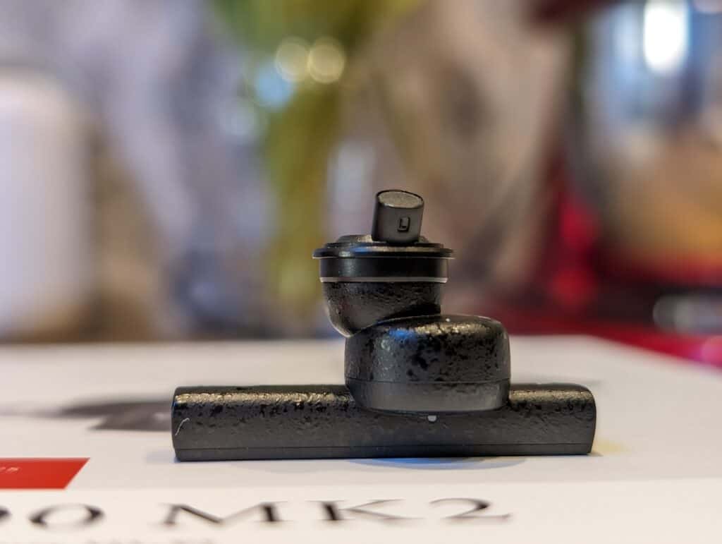 Along with the unusual earbud design, the ear tips are none standard as well.