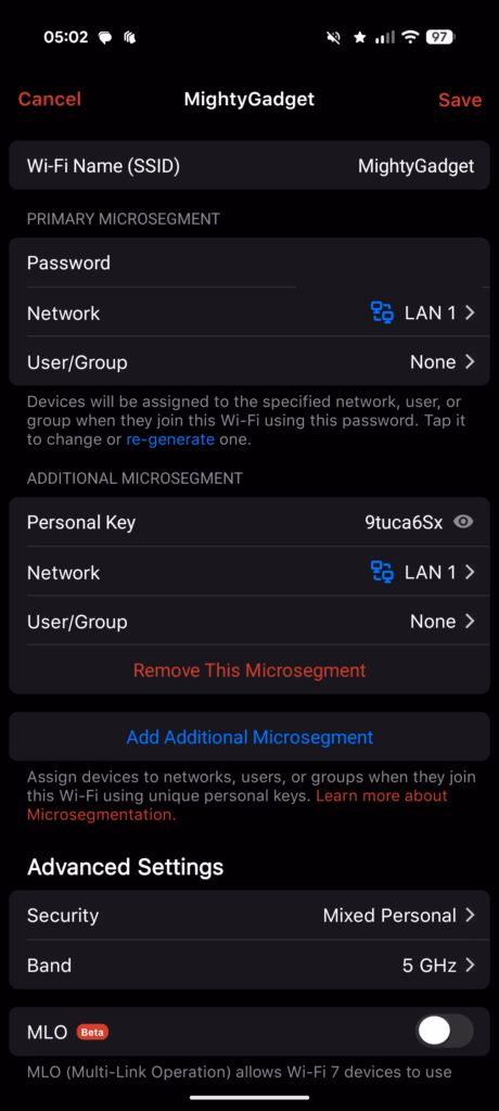 This works by allowing you to create multiple microsegments/networks per SSID. The SSID stays the same, but each microsegment has its own password, allowing you to use the same SSID for all devices (if you want) but securing it with guest access or separating things like IoT.
