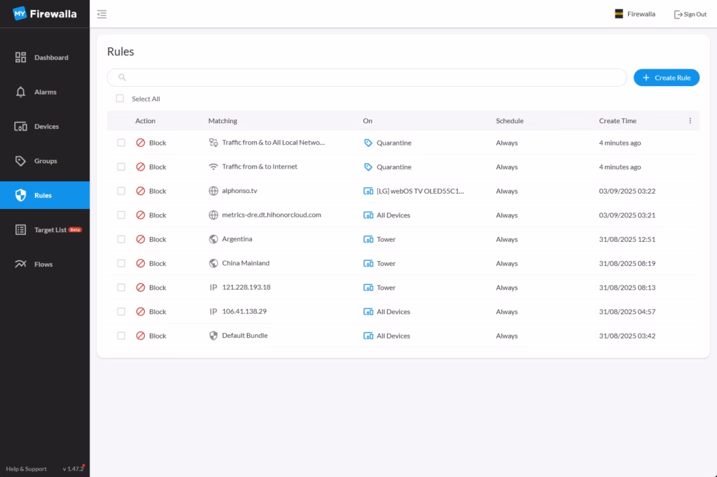 Rule creation is straightforward for basic scenarios but becomes complex for sophisticated policies. The mobile interface struggles with intricate rule sets, making the web interface almost essential for advanced users.