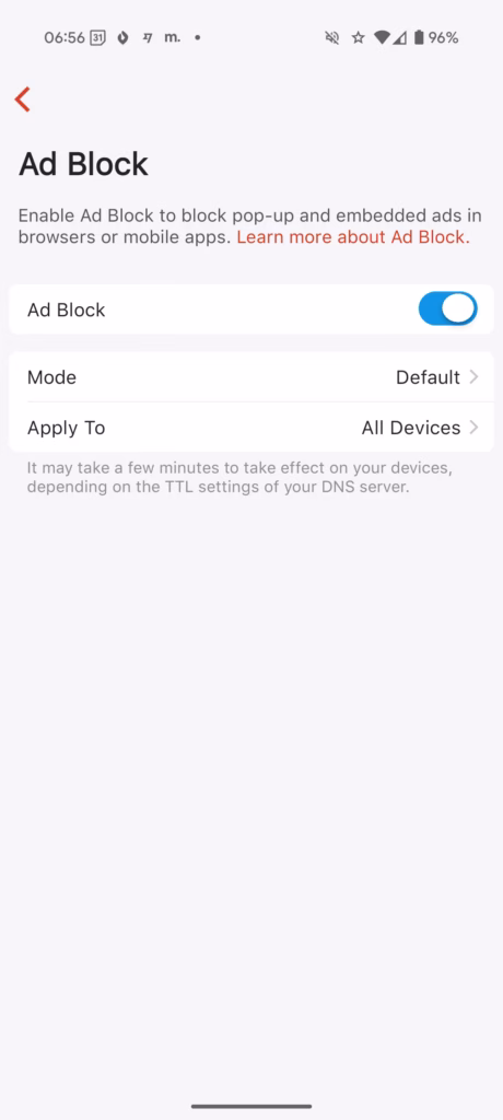 The built-in ad-blocking is reasonably effective. It operates at the DNS level, blocking known advertising domains before they can serve content. The performance impact is minimal and will rival Pi Hole or other similar options with out-of-the-box settings.