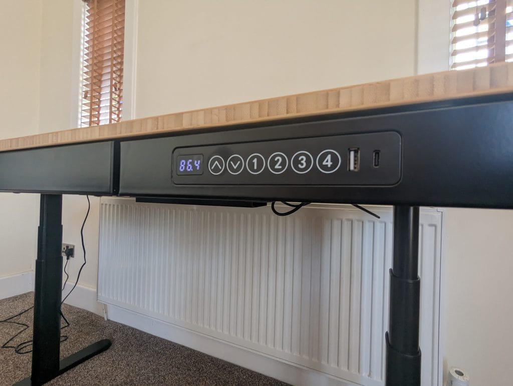 With the inclusion of this USB-C PD port, it makes me hope that FlexiSpot will include a rear-mounted 65W (or higher) PD port on a future table. That would allow you to neatly plug in your laptop on the rear of the table. Though, there is nothing stopping you from running an extension strip and sticking to the underside of the rear of the table.