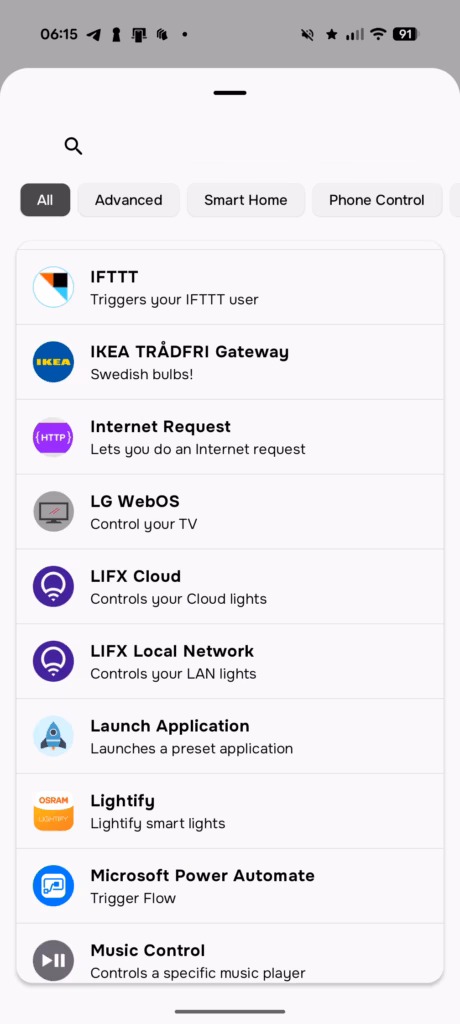 The interface for assigning actions is powerful but can be overwhelming due to the sheer number of options. You can select a specific trigger (e.g., “Small Button Double Push”) and then browse a list of integrations like Sonos, Hue, or generic HTTP requests. For gestures, the app provides a visual guide, though mastering the “hold and twist” requires some practice to get the timing right.