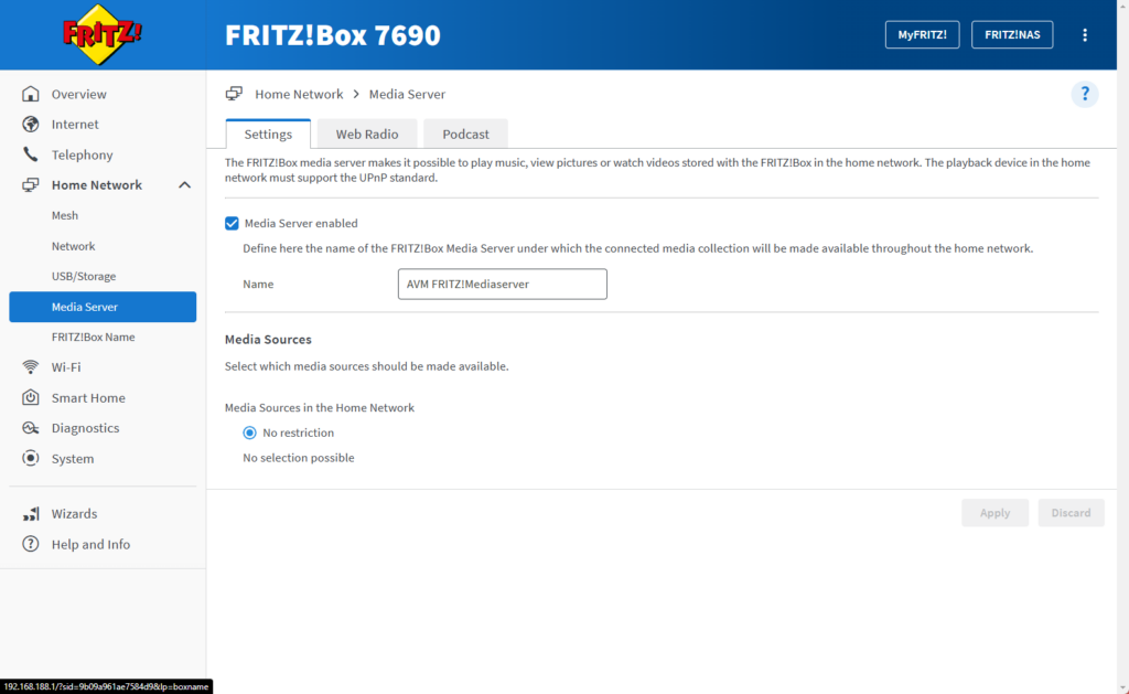 | – Media server (DLNA/UPnP AV), FRITZ!NAS for file sharing | |