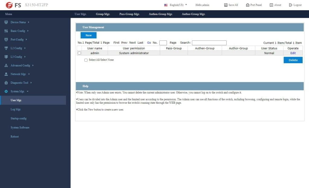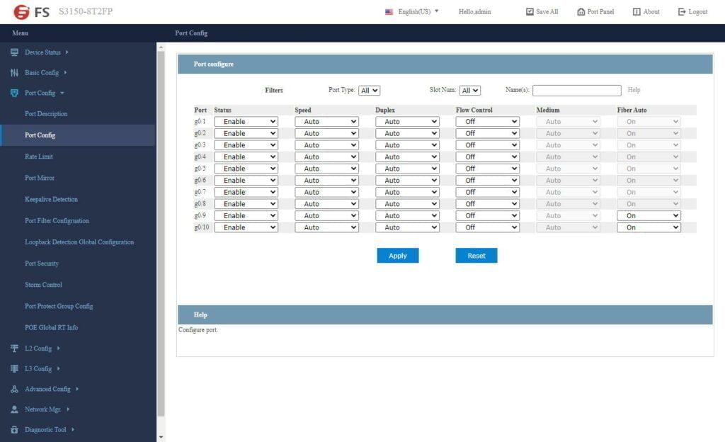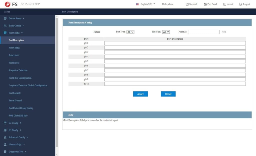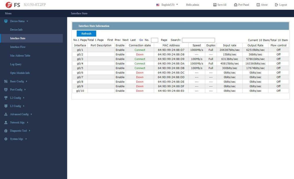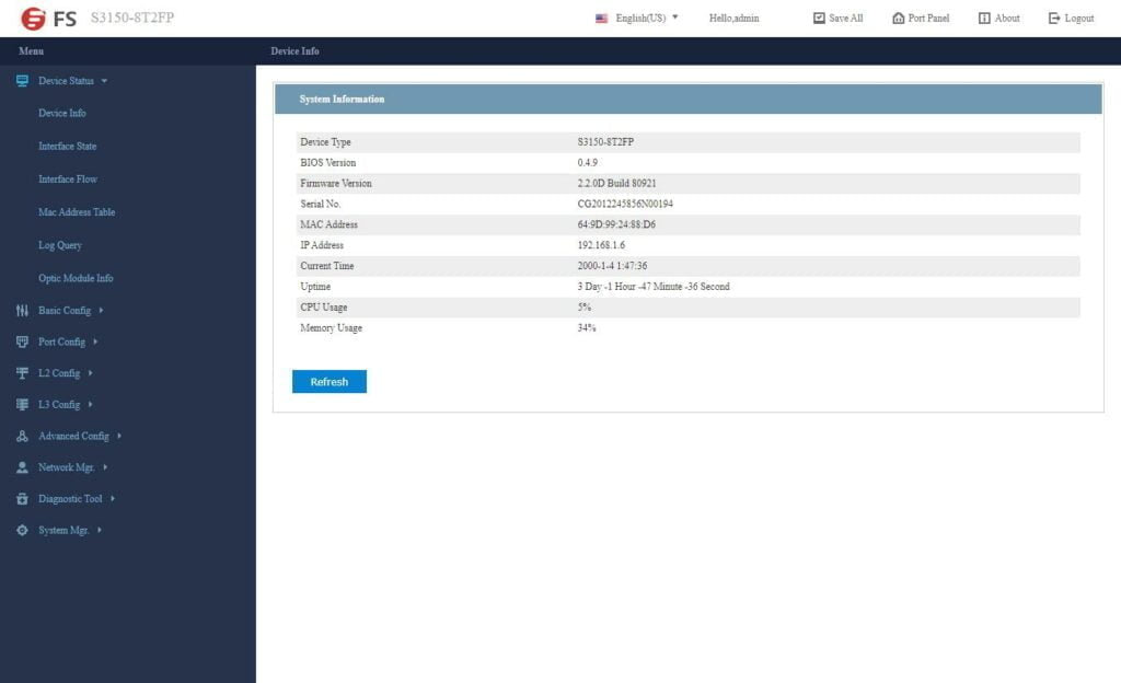 FS has developed their own switch OS, or at least skinned one. It is easy to navigate and has all the features your want for a smart-managed switch.