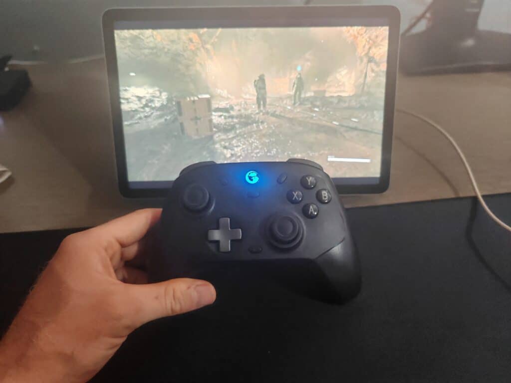 The GameSir T4 Cyclone Pro uses quad motors inside which makes it great for feedback, rumbling away when a game supports it.